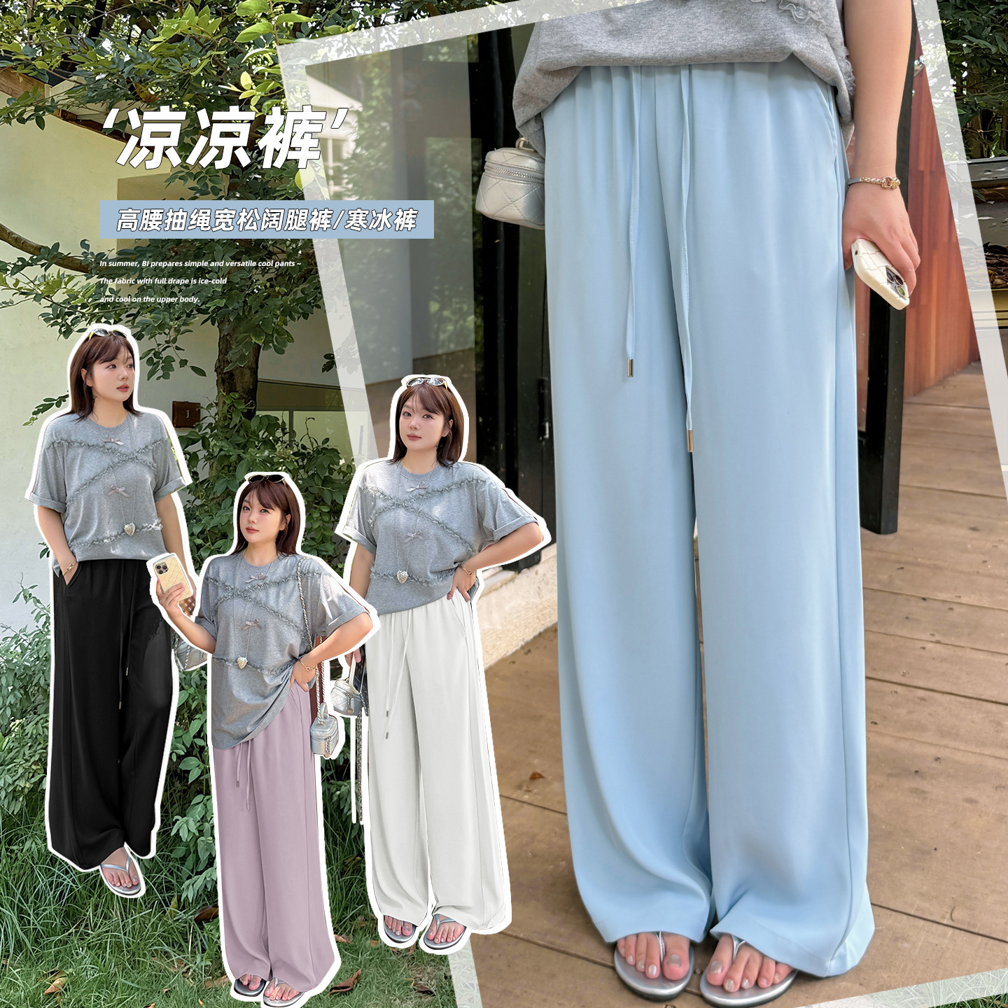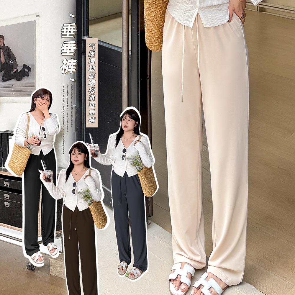 W1345 Xuanchen 夏新作レディース大きいサイズファットMM気質カジュアル無地ドレープクールパンツ薄手ワイドレッグパンツ