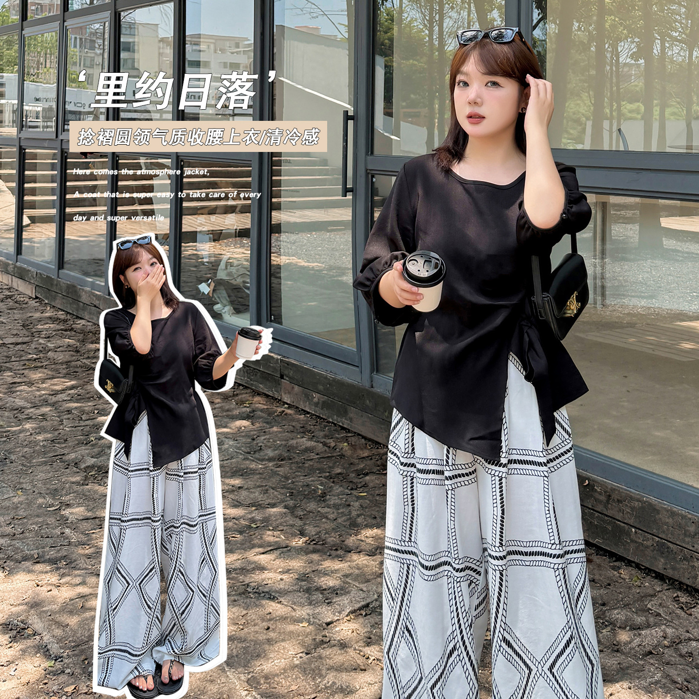 W820夏の新商品に太った大きいサイズの韓国版の気質のしわのtシャツの太ったmmの不規則なカジュアルな風の半袖のシャツ