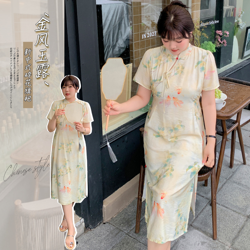 A0049軒辰微太っ大サイズ新式中国風改良版砕花チャイナドレス夏中長スタイル気質ワンピース