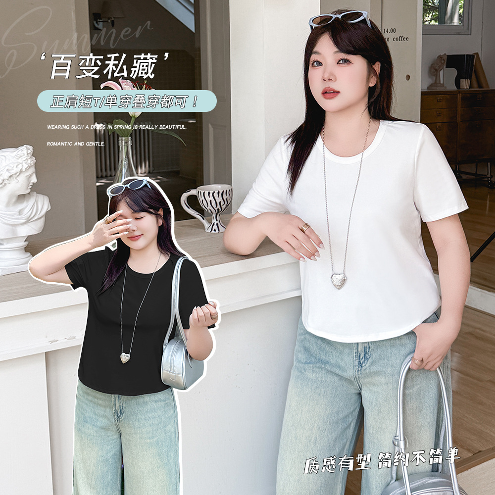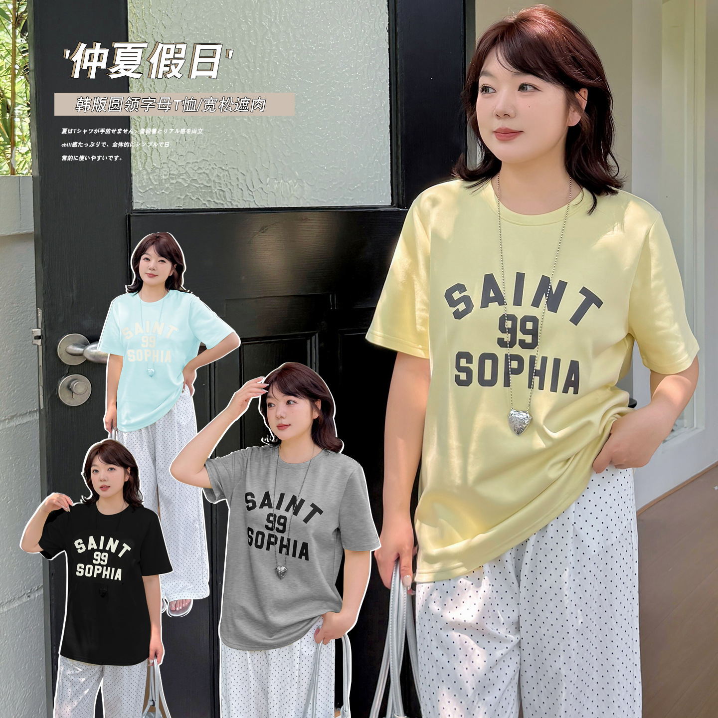 W1308 Xuanchen ファットプラスサイズ韓国スタイル通勤レタープリント Tシャツ夏の新しいルーズラウンドネック半袖トップ女性用