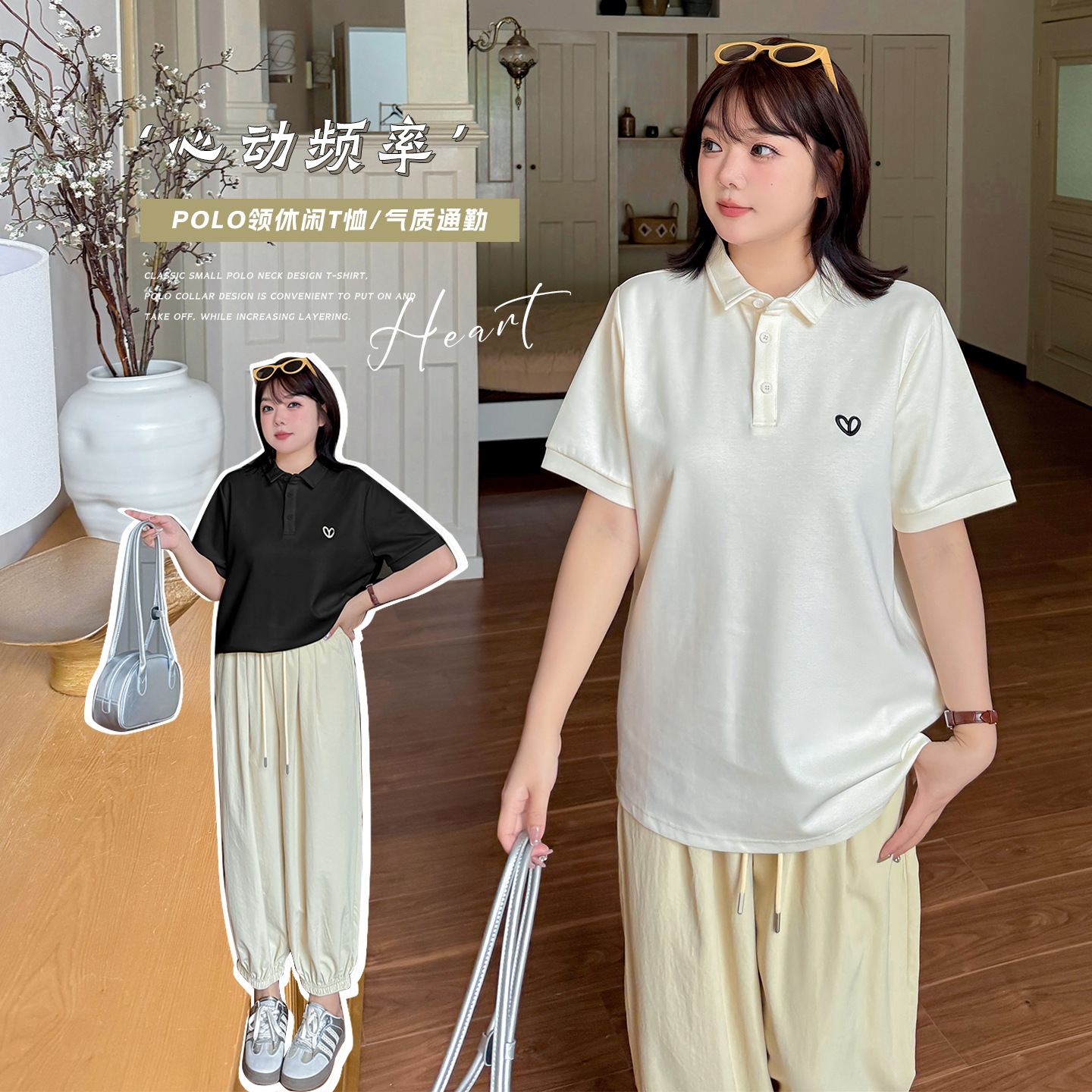 W1311 Xuanchen 大きいサイズファット MM 夏新作レディースカジュアルポロカラールーズカレッジスタイル Tシャツラペルトップ