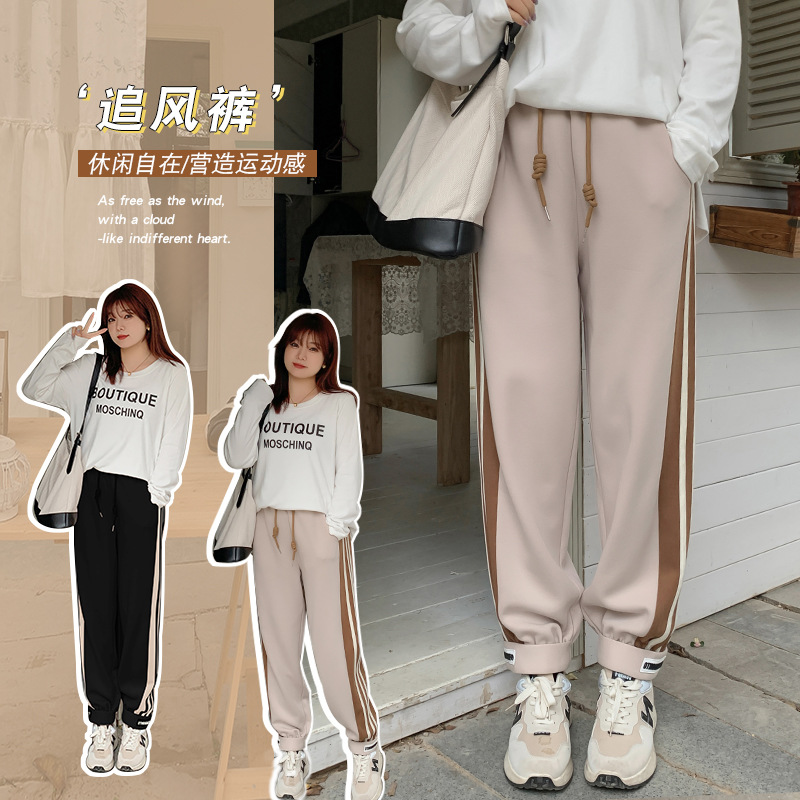 W977 新製品プラスファット mm デザインカジュアルスポーツパンツ西洋スタイルコントラストカラーリボンレギンス痩身女性-BFD