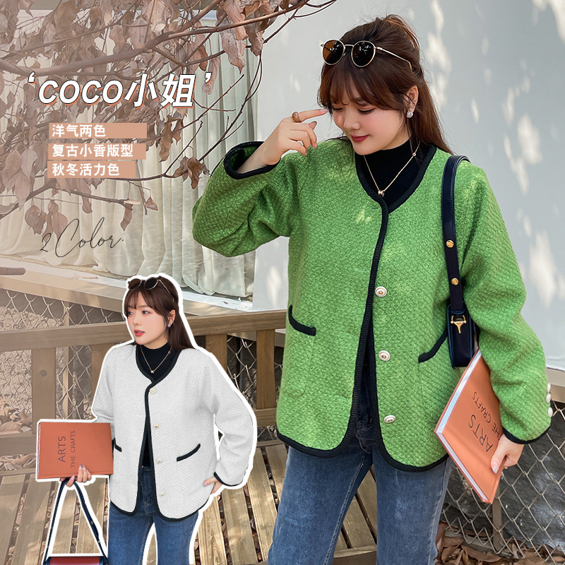 W927軒辰秋加肥大コード女装太ったmmデザイン感コート気質小香上着洋気シンプル-BFD