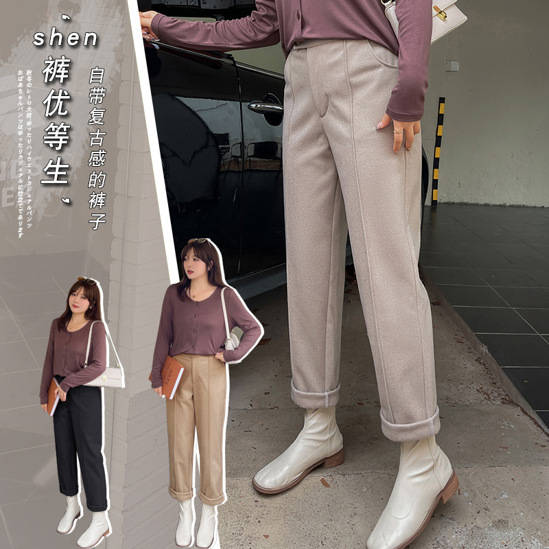 W745轩辰微胖大码韩版常规OL休闲遮肉萝卜裤秋新款加肥宽松长裤女