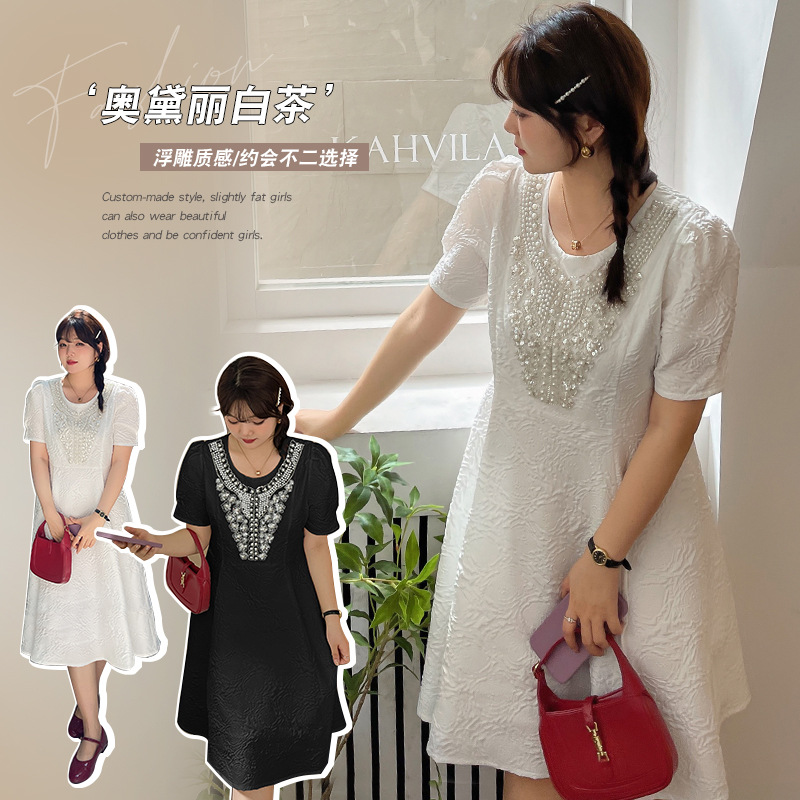 W884軒辰大コード女装夏新商品韓国風デザイン感ワンピースレリーフスカート太ったmm洋気女性スカート