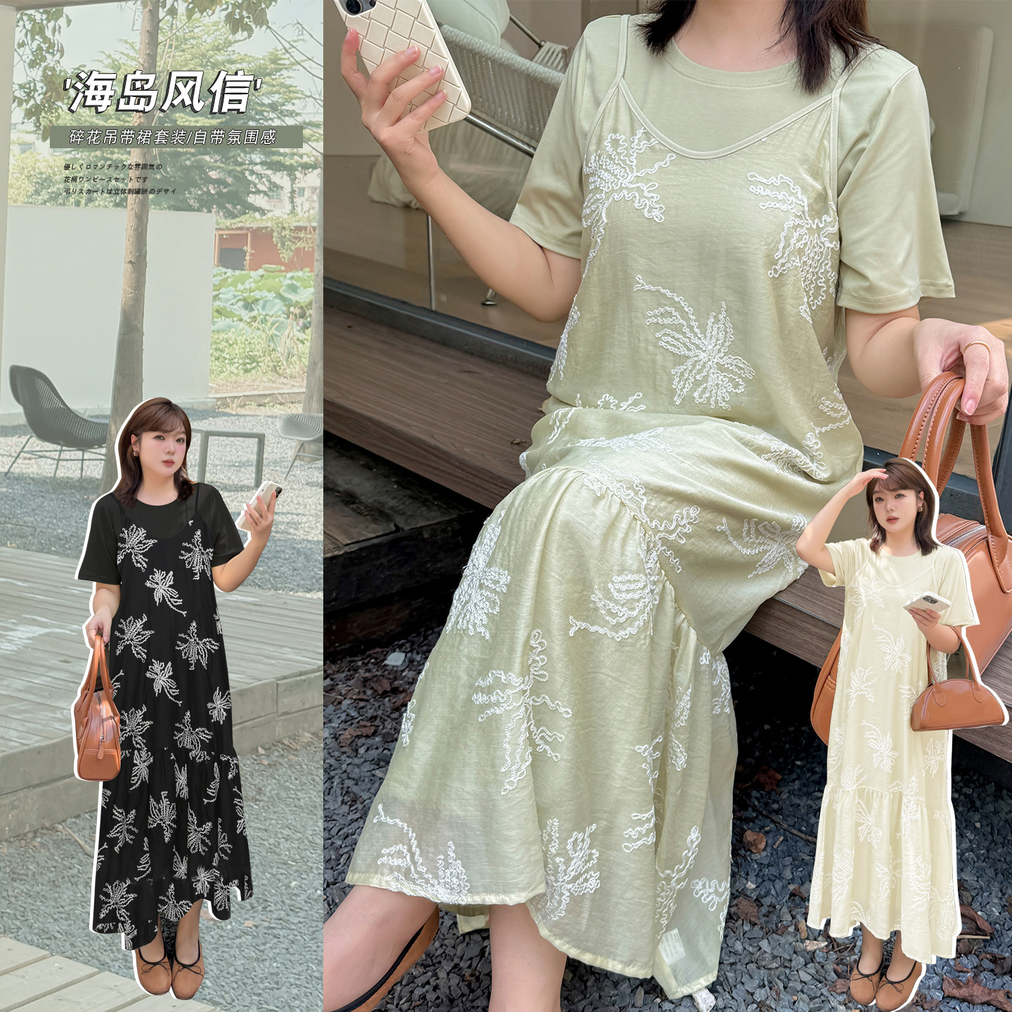2400 華晨 大きいサイズ 新中式 国風 花柄刺繍 チャイナドレス 夏 洋風 ロング&ショート丈ワンピース レディース-BFD