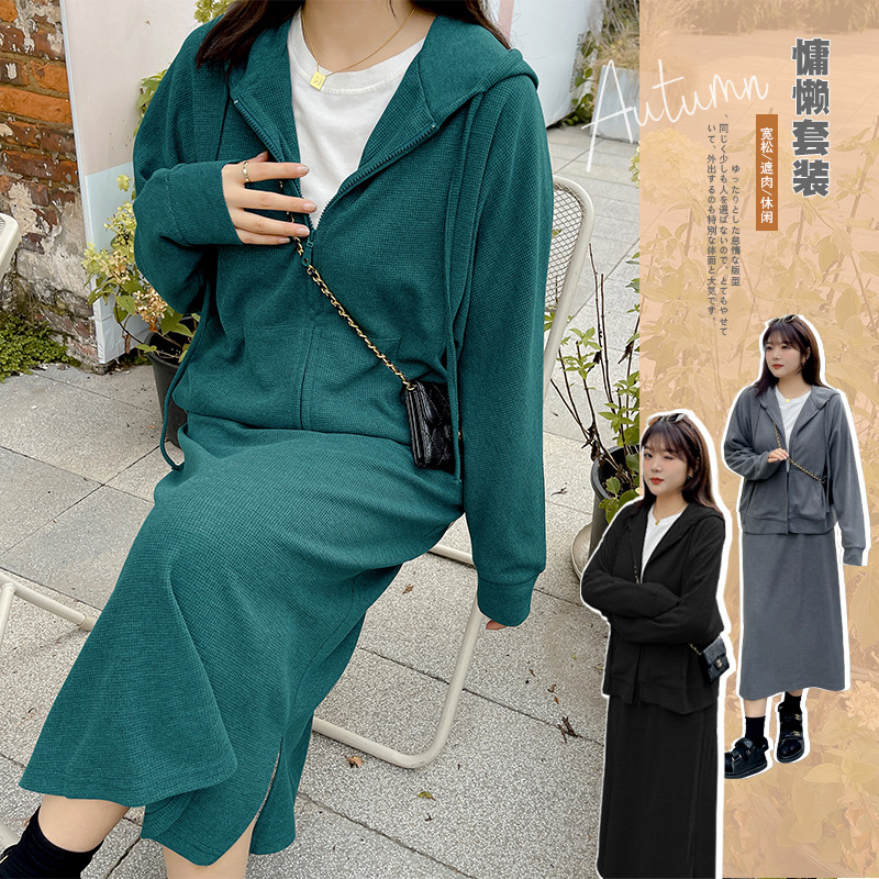 W641春の微太った大きいサイズの婦人服のカジュアルなスポーツウェアのゆったりした怠惰な風の衛衣の2つのセットのスカート-BFD