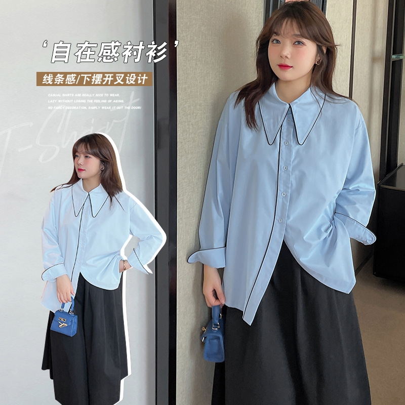 W 747軒辰大コード女装春の新しい文芸風ゆるいシャツ太ったMM気質シャツ200斤-BFD