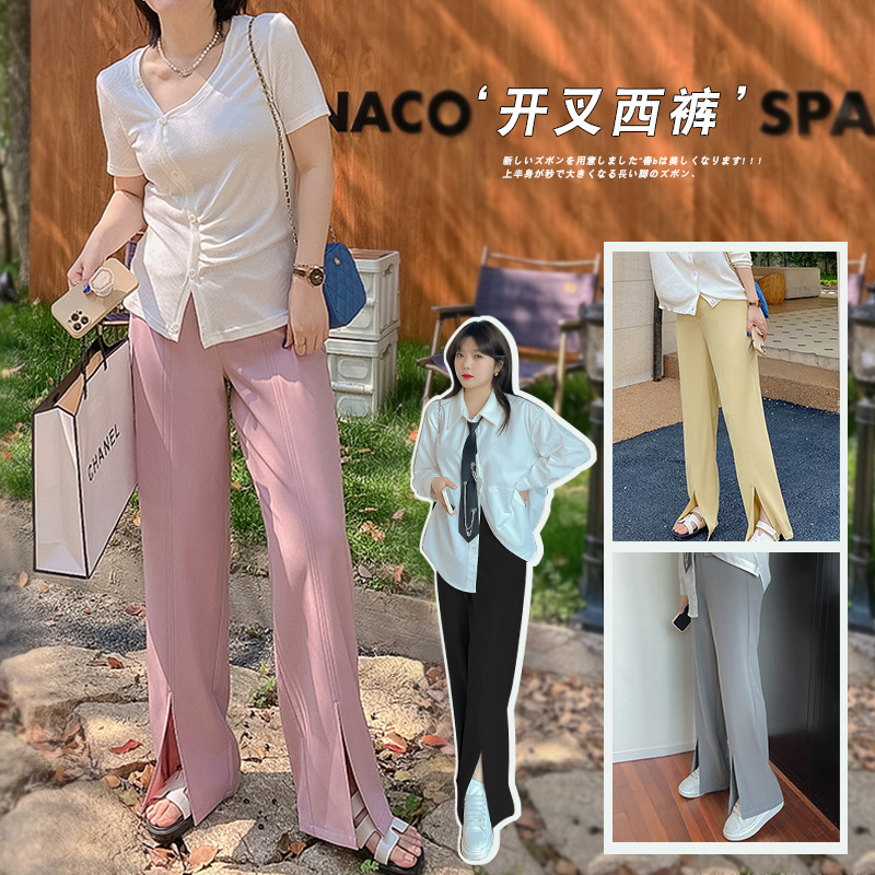W 753軒辰大コード韓国版肉を遮る常規ol慎重機開叉スーツズボン太ったmm洋気高腰ズボン潮