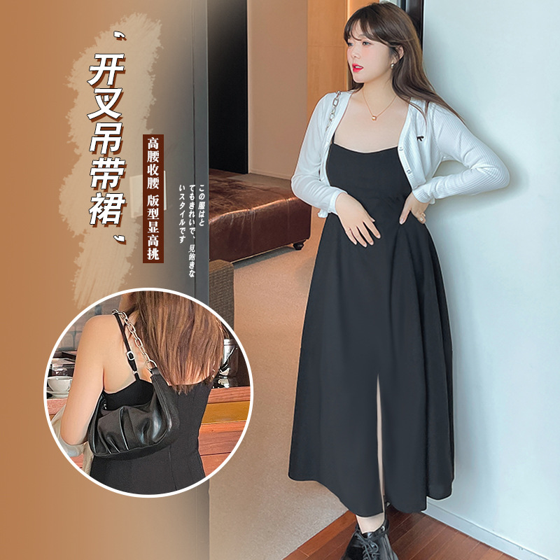 A408軒辰微太った大きいサイズの婦人服のセクシーなサスペンダーのスカートの太っているmmの春の新型の気質の通勤のサスペンダーの小さい黒いスカート