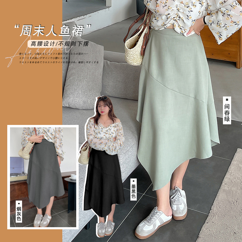 W782 輝辰 マイクロプラスサイズ 韓国風 OL風 エレガント 不規則ハイウエストスカート ゆったりおしゃれスカート-BFD
