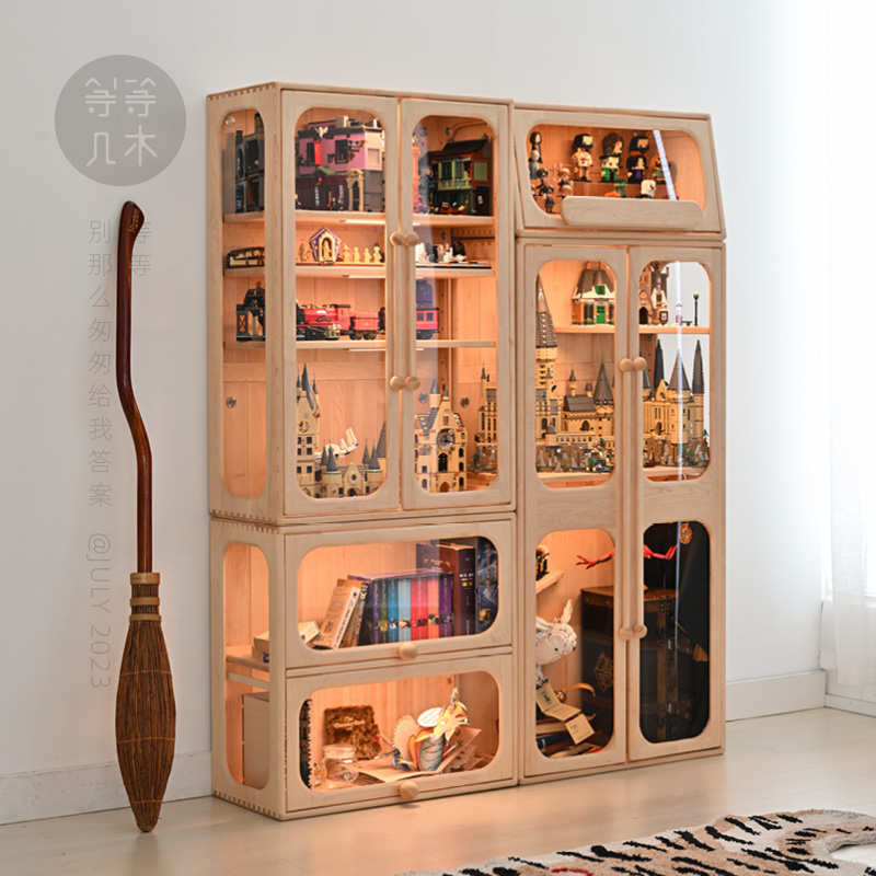 W 7古霊閣収蔵棚実木アクリル積み木手作り展示棚モジュール組合せ棚