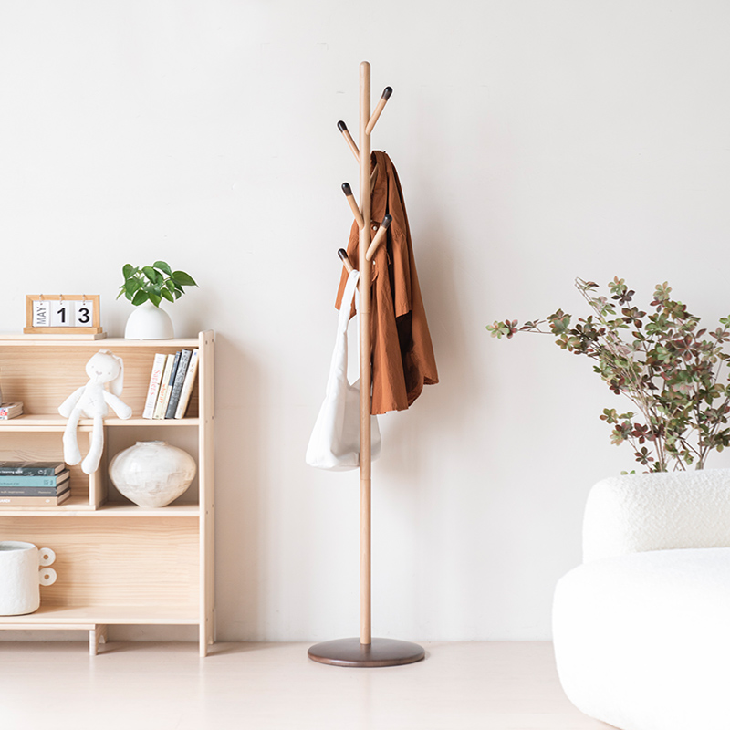 W7実木創意着地ハンガー客間寝室縦型ベッドサイドのケヤキ子供服ハンガー小型ハンガー