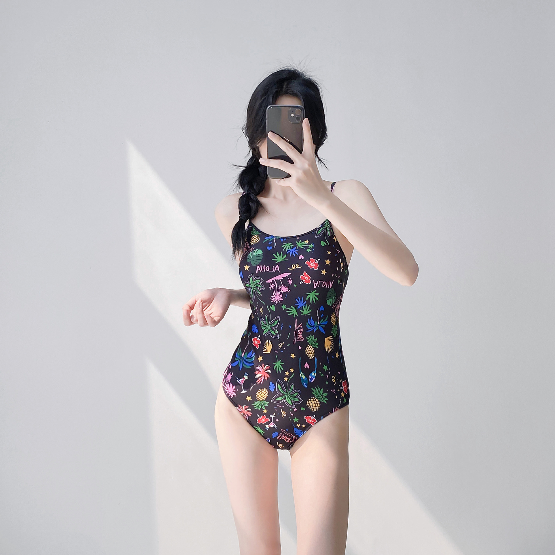 ブラックスパンコールワンピース水着レディース新型プロスポーツトレーニング水泳館競速類温泉水着