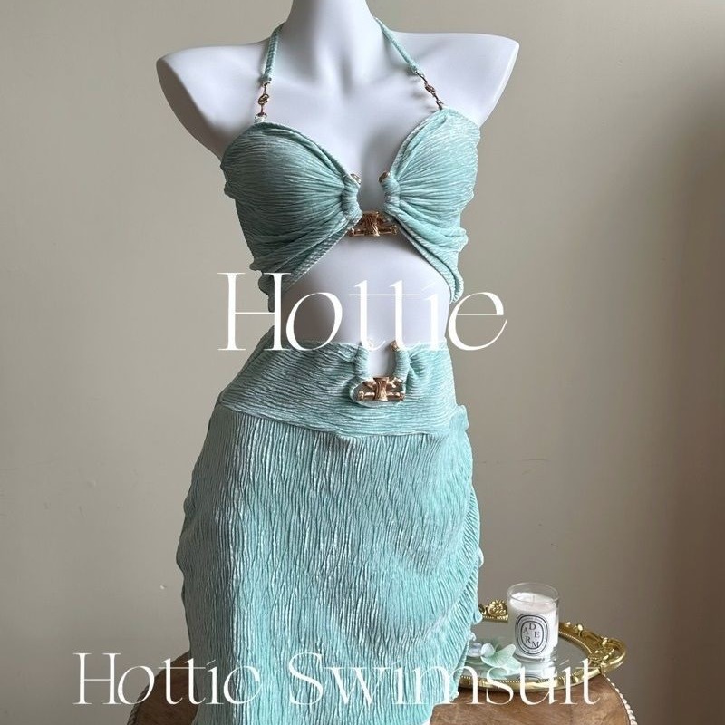 【ミントマンボ】春夏新作 スプリット水着 3点セット 美白・肉感カバー 温泉ビーチリゾート ピュアディザイアスタイル