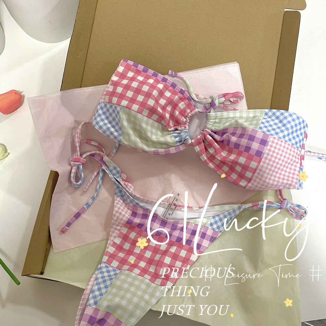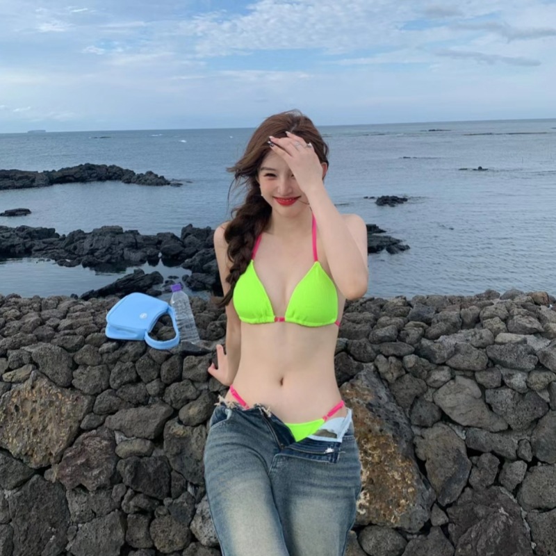 2024 韓国版の新しい明るい色のスプリット水着フェミニンな三角形のネックストラップビキニ温泉休暇ビキニ
