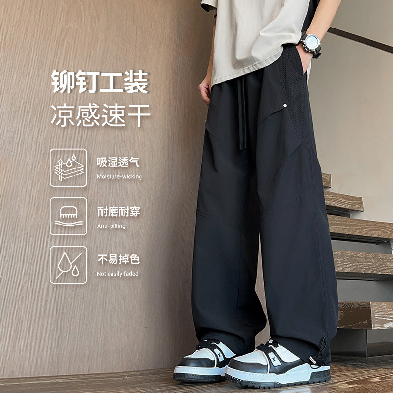 1688アイスシルクオーバーオールパンツメンズ夏薄いストレートトレンディブランドアサルトパンツ中学生カジュアルスポーツ空挺パンツ