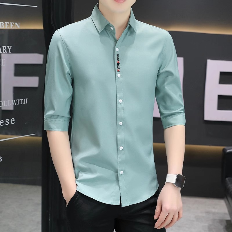 ライトビジネスメンズ半袖シャツ夏アイスシルク薄手七分袖シャツトレンディラペルストレッチインチジャケット