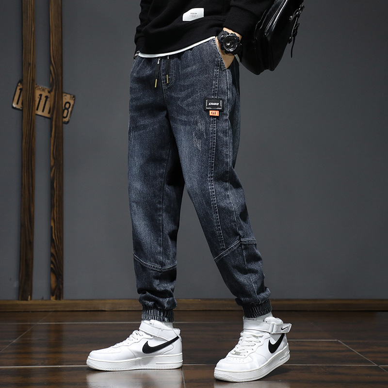 春のレギンスジーンズメンズルーズハーレムワークウェア春と秋のウエストゴム弾性カジュアルスポーツロングパンツ