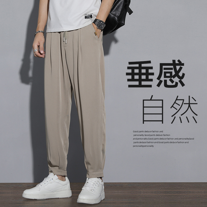 夏の新しいメンズカジュアルパンツアイスシルク薄型多用途ストレートレッグルーズトレンディな速乾性スポーツロングパンツメンズパンツ