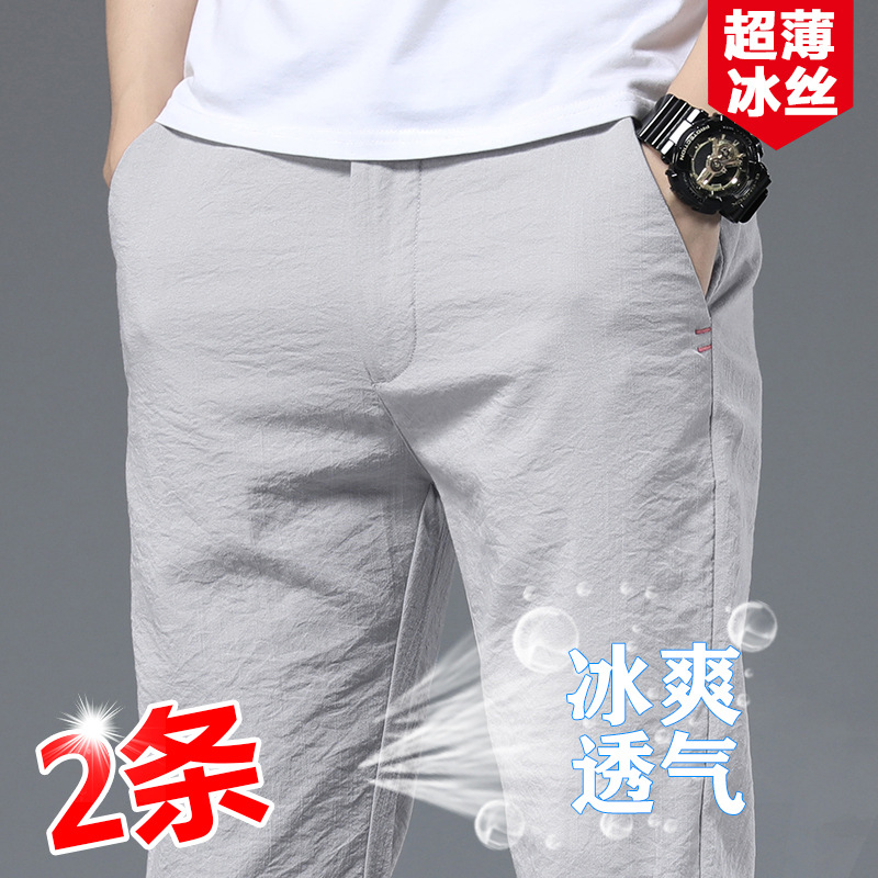 アイスシルクロングパンツメンズカジュアルパンツ夏薄手ルーズトレンディ多用途速乾性夏ストレートスポーツパンツ男性用