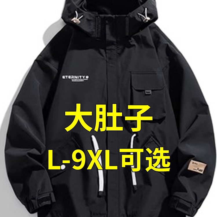 大きいサイズのメンズコート、春秋のワークジャケット、メンズルーズトップス、ファットプラスサイズのフード付きジャケット