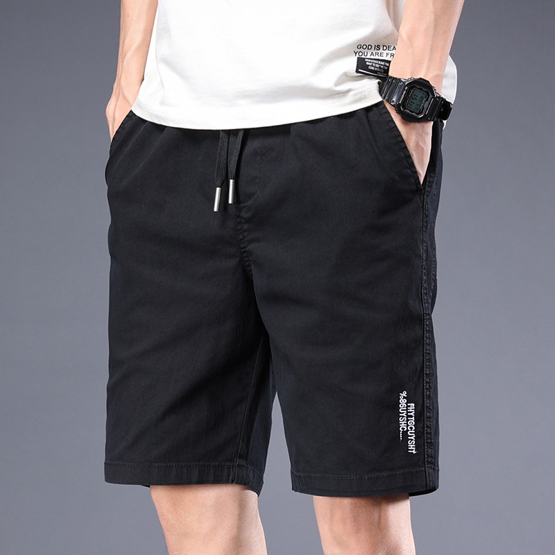 ブラックアイスシルク薄い弾性スポーツショーツメンズカジュアル速乾性5点パンツ夏のビーチルーズ5点パンツトレンディ