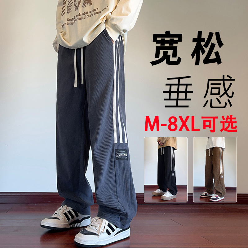 特大サイズファッティトレンドストライプコーデュロイカジュアルパンツメンズ春秋トレンドブランドルーズストレートワイドレッグスポーツパンツ
