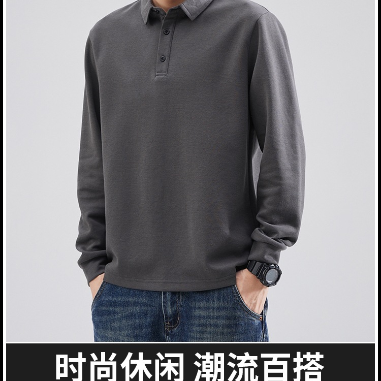 2025 春と秋の新長袖ポロシャツメンズラペル Tシャツ秋と冬のビジネス夏服カジュアルトップス