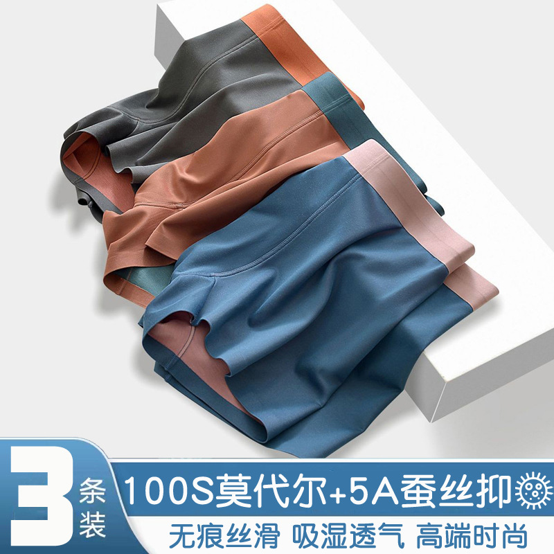 メンズ 100 カウント モーダル シームレス パンティー シルク クロッチ 通気性があり、毛玉になりにくい ボクサーブリーフ ボクサーパンツ ショーツ