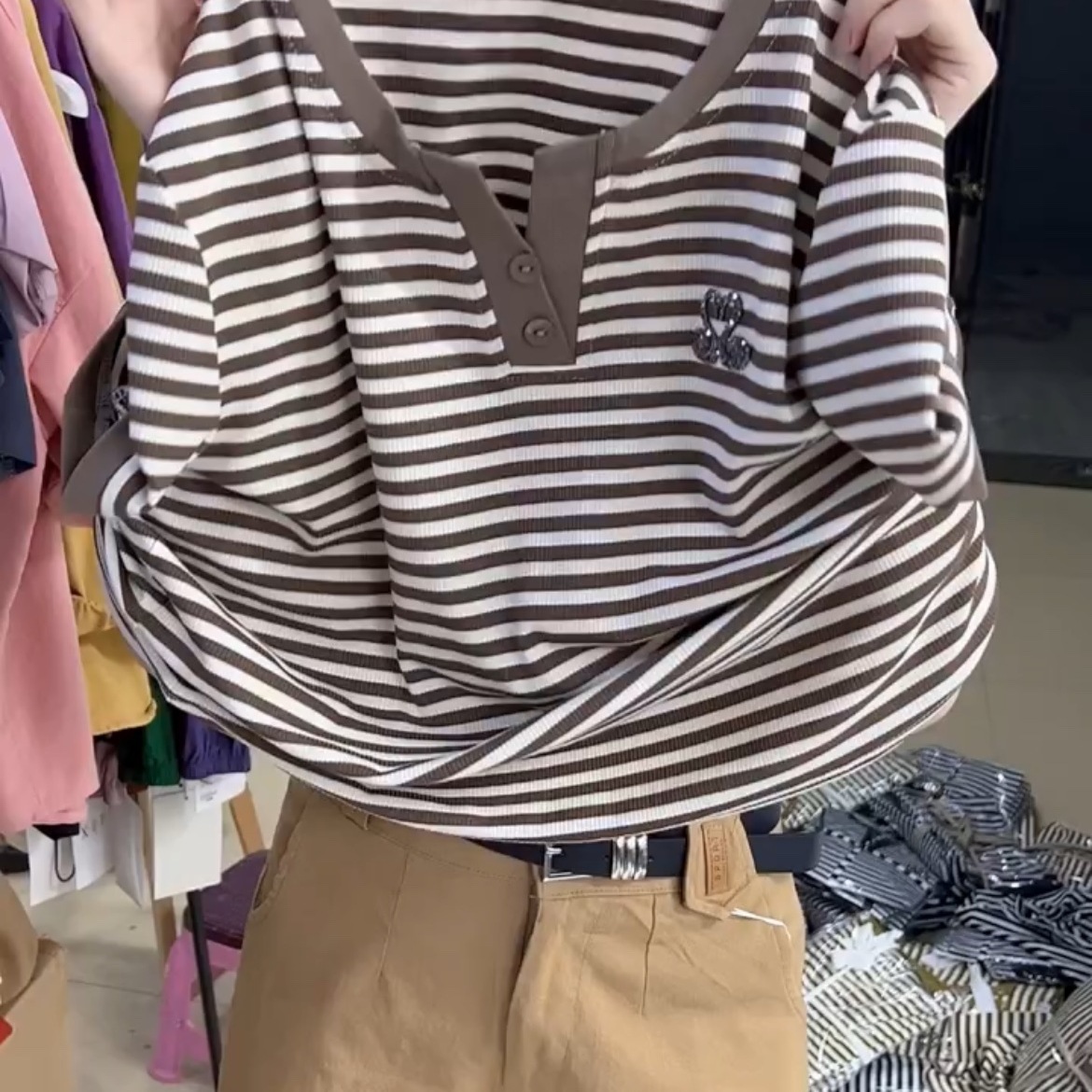 夏の新型ハサミ襟半袖tシャツの女性ストライプが痩せています。