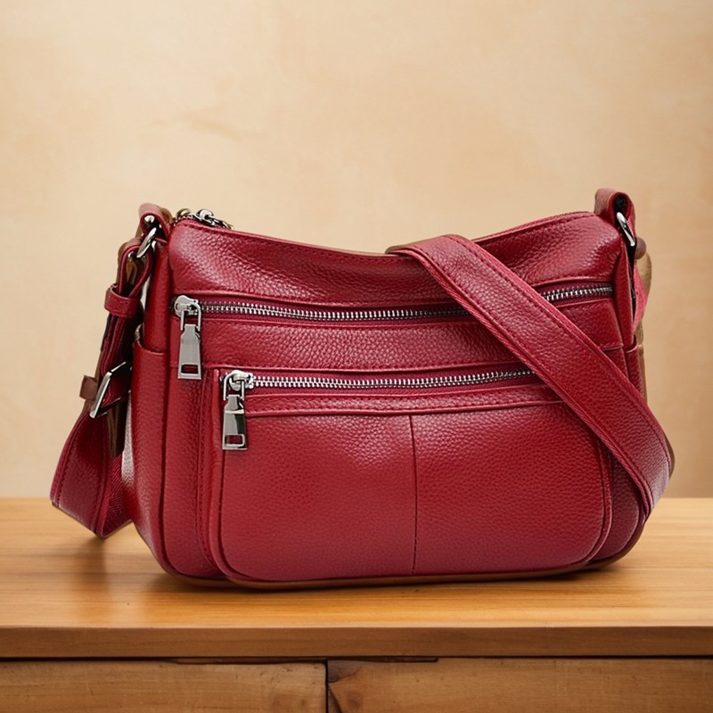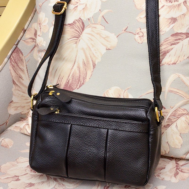 中年女性バッグ クロスボディバッグ 多層 大容量 マザーモデル ショルダーバッグ シンプルで実用的な第一層牛革バックパック