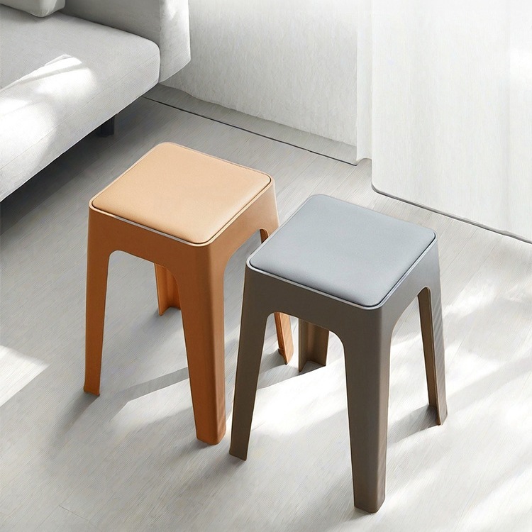 プラスチック製のスツール、柔らかいパッケージ、厚みのある家庭用積み重ね可能なリビングルームのモダンでシンプルなベンチ、長時間座っても快適な業務用ダイニングチェア