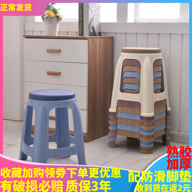 家庭用プラスチックスツール、厚くて積み重ね可能な高丸スツール、極厚のモダンなシンプルなベンチ、長時間座っても快適な椅子