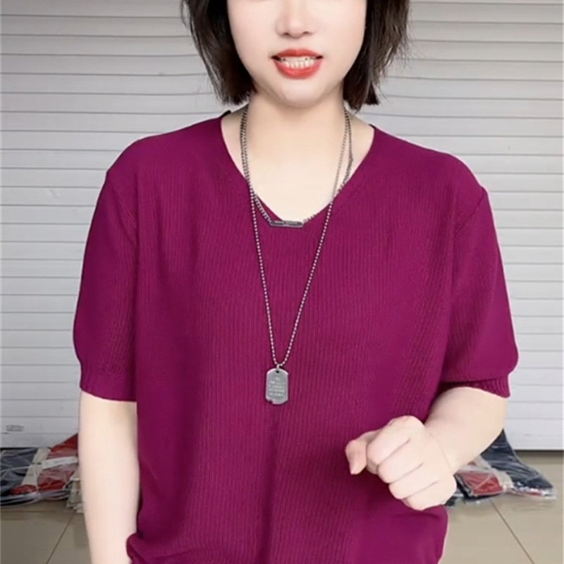 2025 新しい V ネック薄い綿とリネンのセーター女性の夏の韓国スタイル大きいサイズ半袖綿ルーズボトムシャツトレンディな