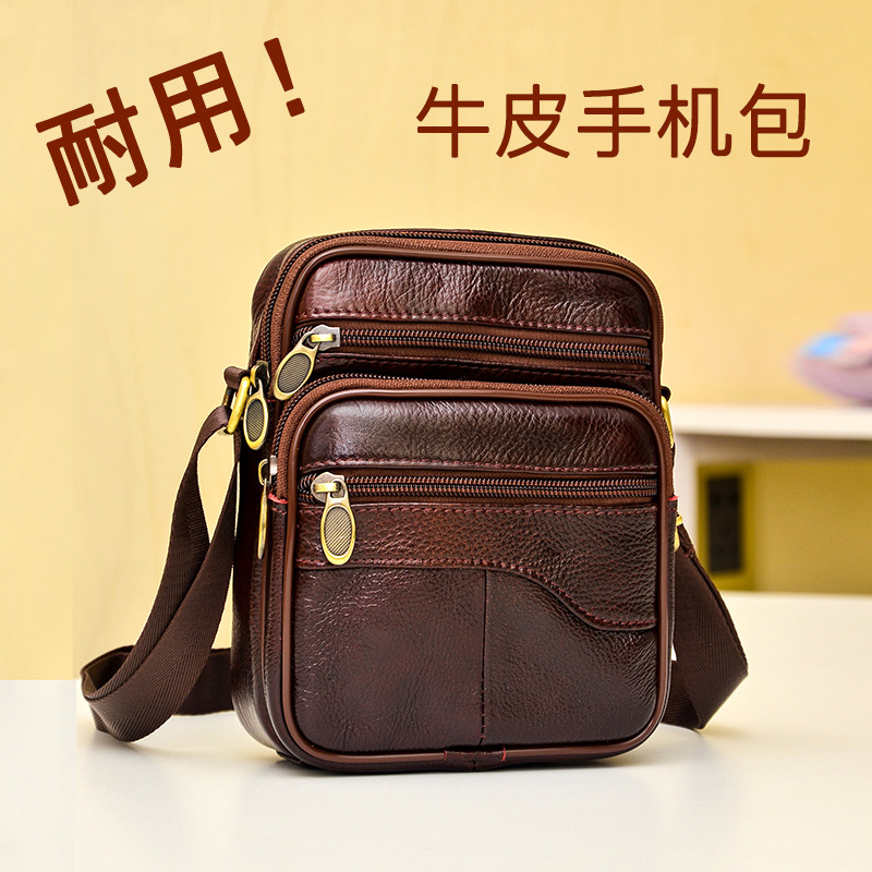 中年女性の携帯電話バッグ、ユニセックス、レトロなメッセンジャーバッグ、本物の牛革バッグ、多機能小型バッグ、ソフト