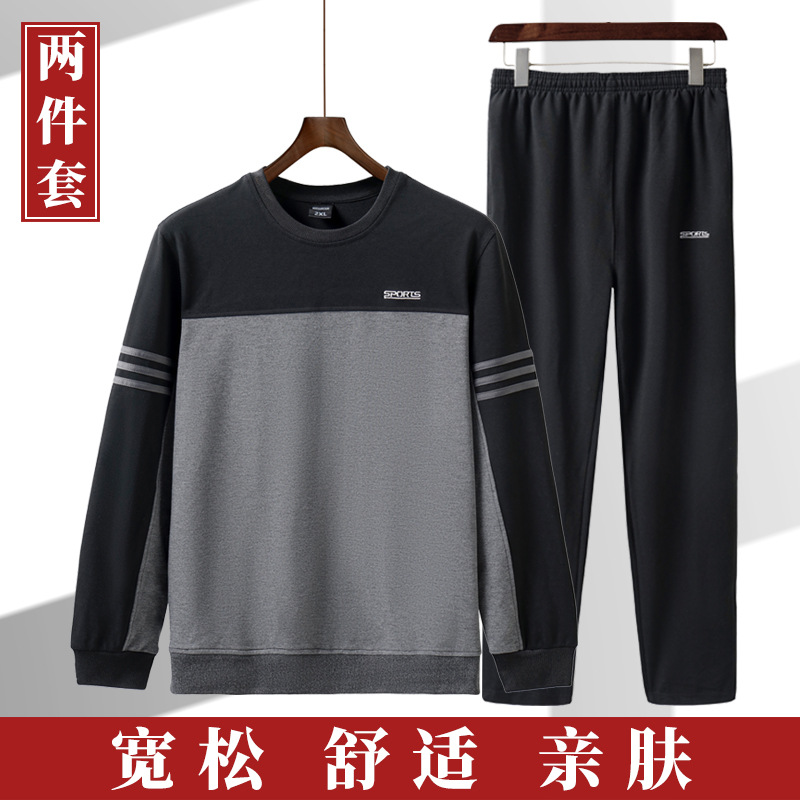 メンズ春秋スウェットスーツ中高年ラウンドネックスポーツウェアお父さん長袖秋服おじいちゃんカジュアルお父さん