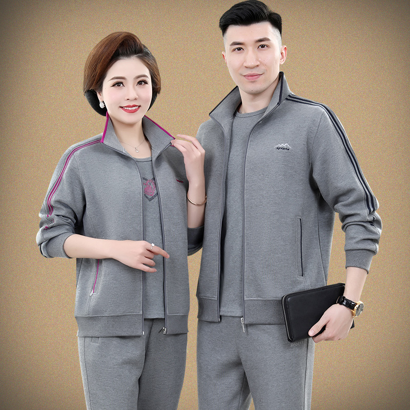 中年ママ 春 スポーツウェア スーツ 女性 中高年 ブランド カップル 春秋 ジャケット お父さん トップス 3点セット