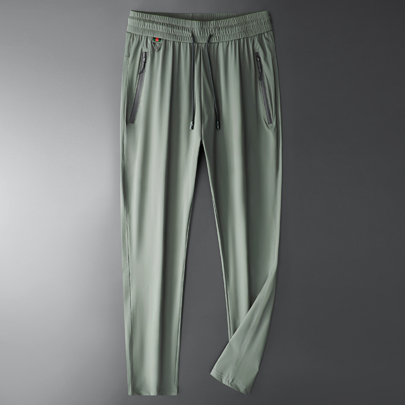 アイスシルクスポーツパンツメンズ夏速乾性軽量シルキーメンズカジュアルパンツアーミーグリーン大きいサイズのズボン