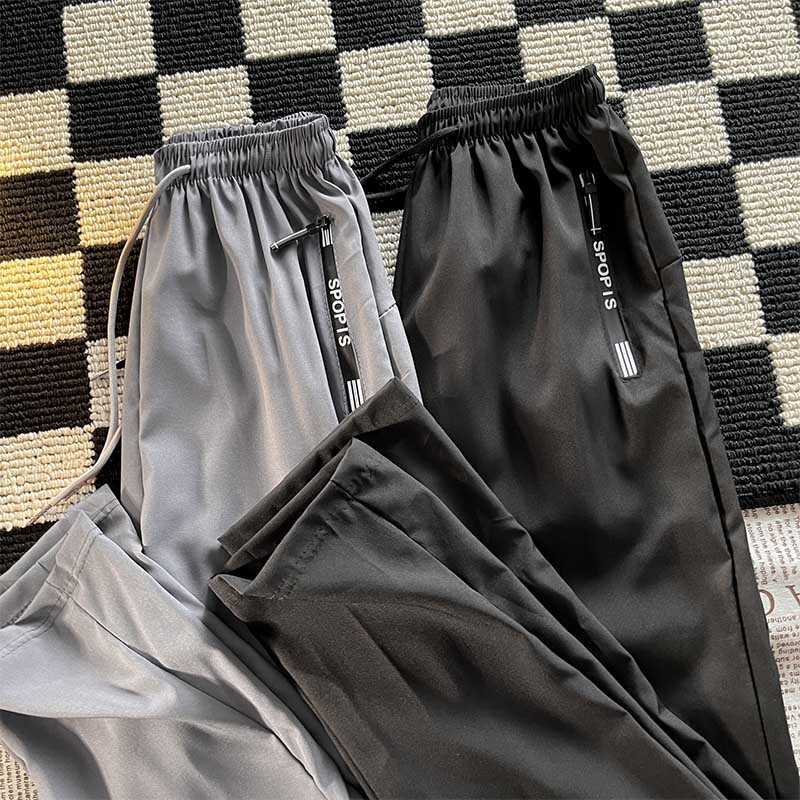夏用薄手ストレートアイスシルクパンツメンズ9点スポーツカジュアル万能トレンドランニング速乾ゆったり大きいサイズパンツ