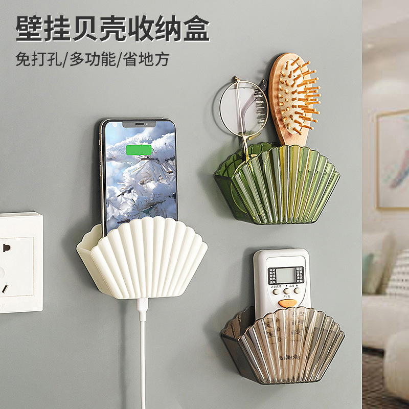 軽豪華壁掛け貝殻リモコン収納ケース穴なし充電口設計多機能収納神器