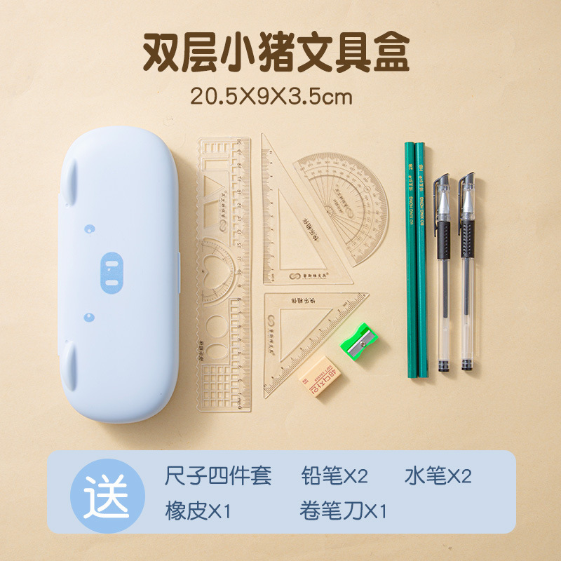 ピギー二層文具箱セット筆箱男の子と女の子学生大容量筆箱印刷可能なロゴ広告ギフト