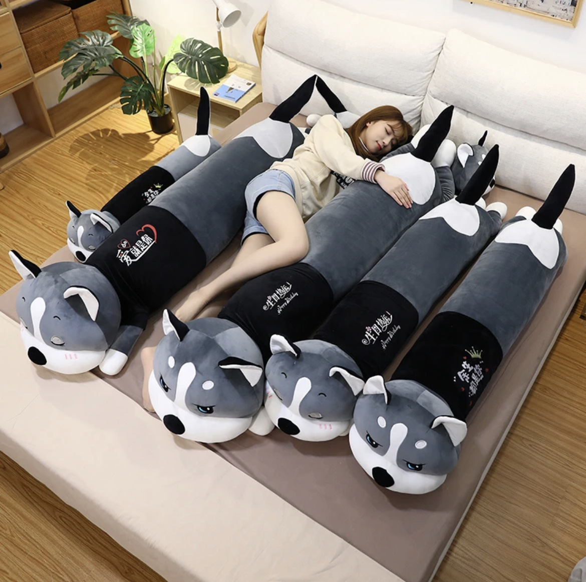 ぬいぐるみ抱き枕公仔1.3メートルハスキーセーター犬公仔抱き枕伏せ枕バレンタインデー