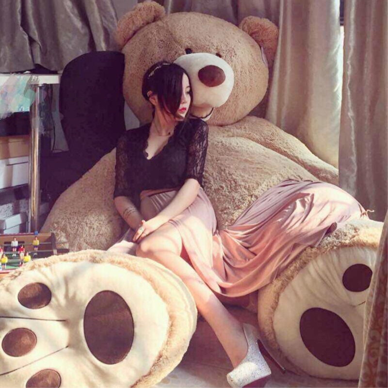 熊のぬいぐるみを抱いて2メートルのテディのパンダのぬいぐるみの女の子を抱いて寝ます。可愛いぬいぐるみの大熊を抱いて彼女に送ります。