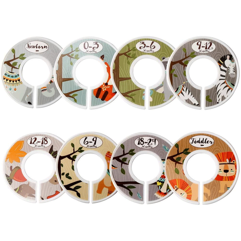 サイズカードサイズ片タンス服整理器動物柄両面プラスチックベビー服クローゼット仕切りリング