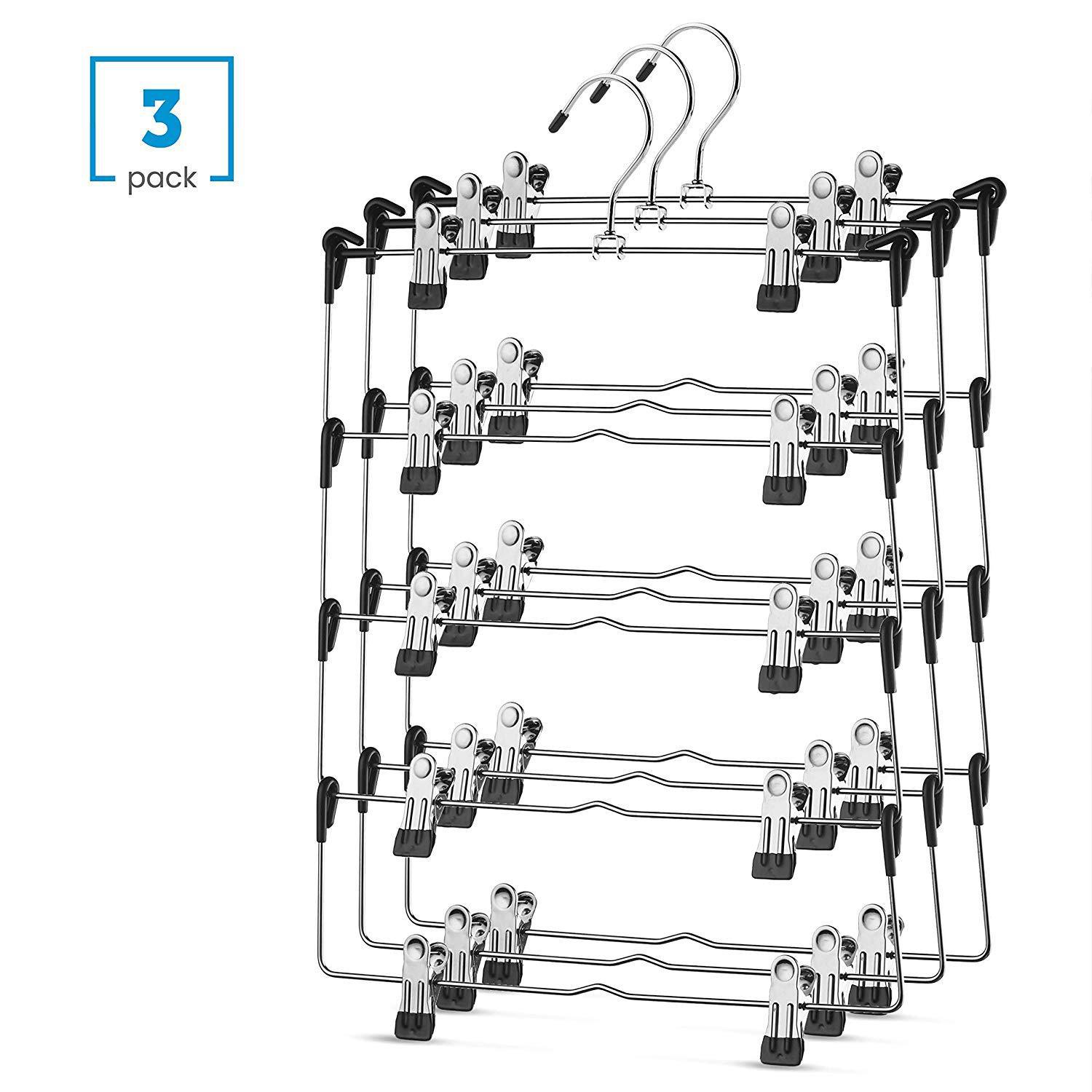 アマゾンの5層ハンガーの金属クリップのズボンのフレームのスカートの金属の浸塑のハンガーのズボンのハンガーの衣類のフックの収納棚