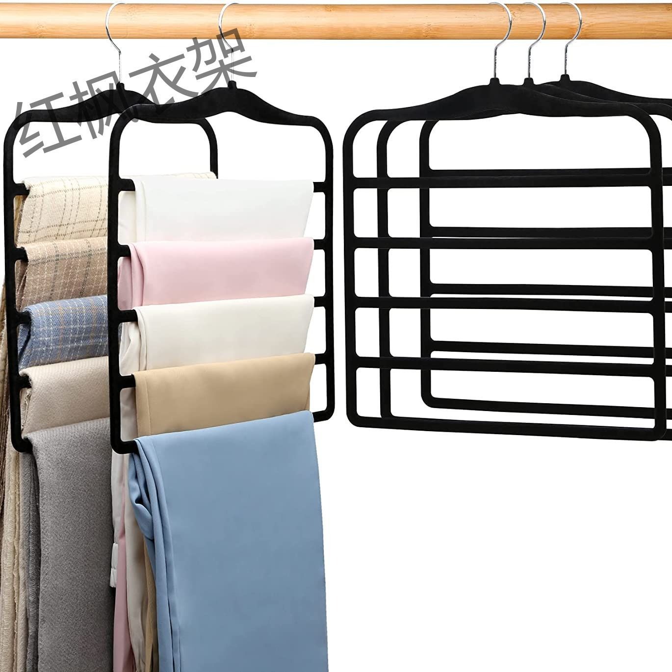 多層滑り止め植毛ズボンハンガー家庭用省スペース多機能無痕ビロードハンガーマフラーネクタイズボン掛け