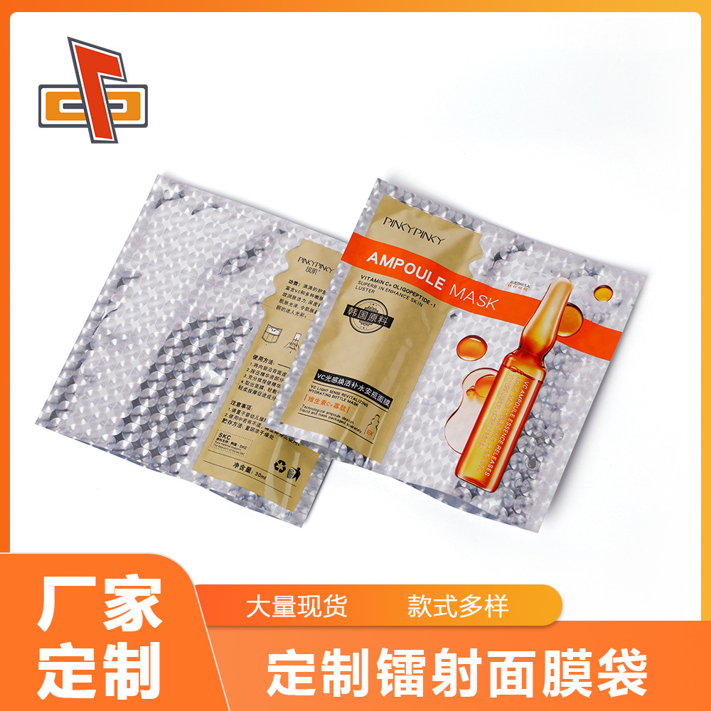 レーザー膜マスク包装袋三辺封アルミ箔光沢レーザー膜二重包装袋マスク袋輸出