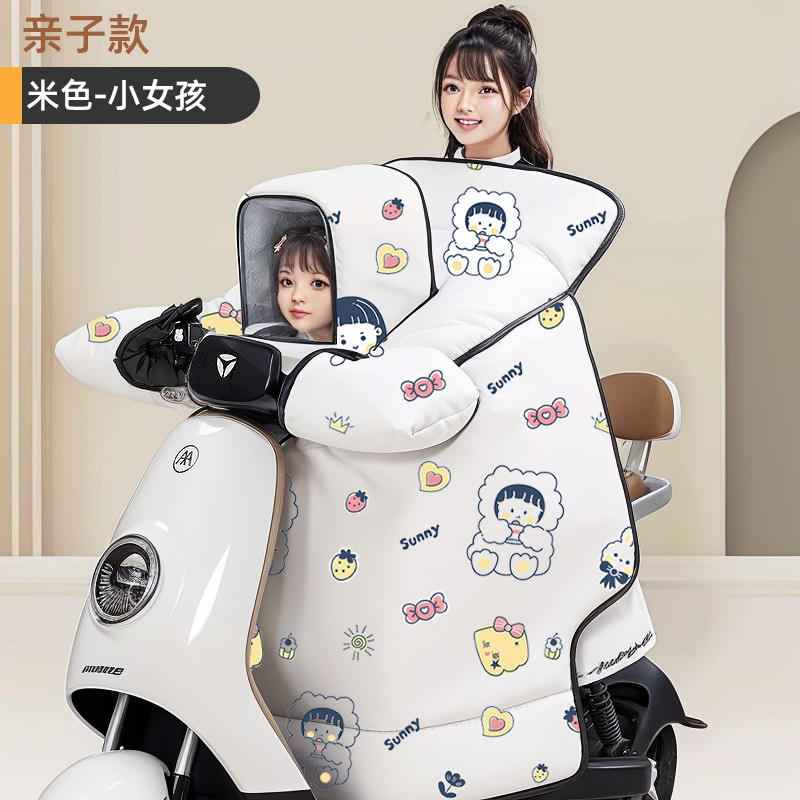 肩を保護した親子の電気自動車のフロントを厚くして、冬にバッテリーバイクの防風カバーに防水された
