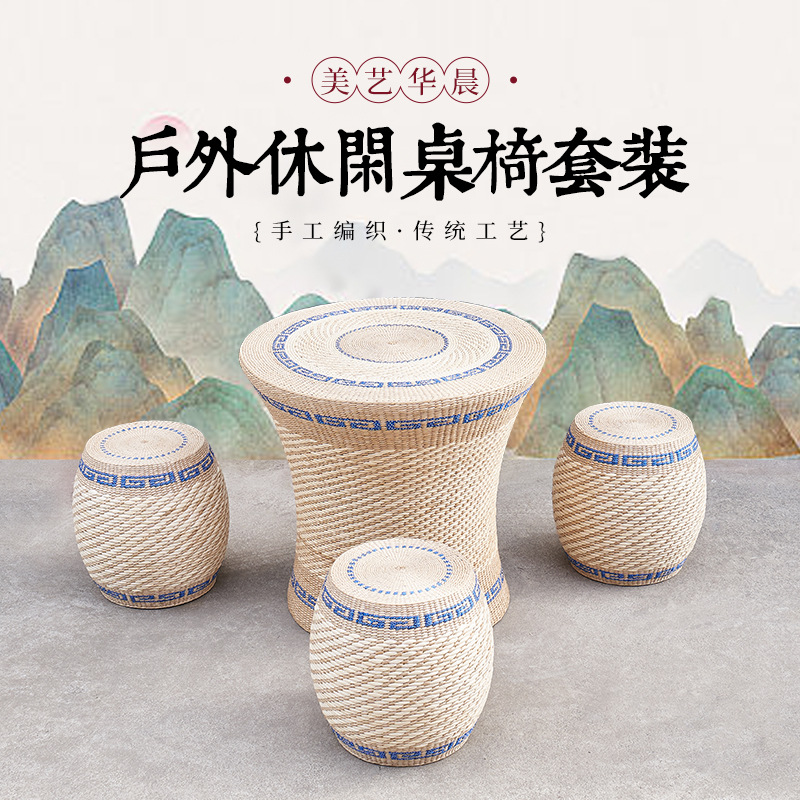 国境を越えた草編みの組み合わせ屋外テーブルと椅子の組み合わせ草編みテーブル茶道レジャー屋外テーブルと椅子の組み合わせ